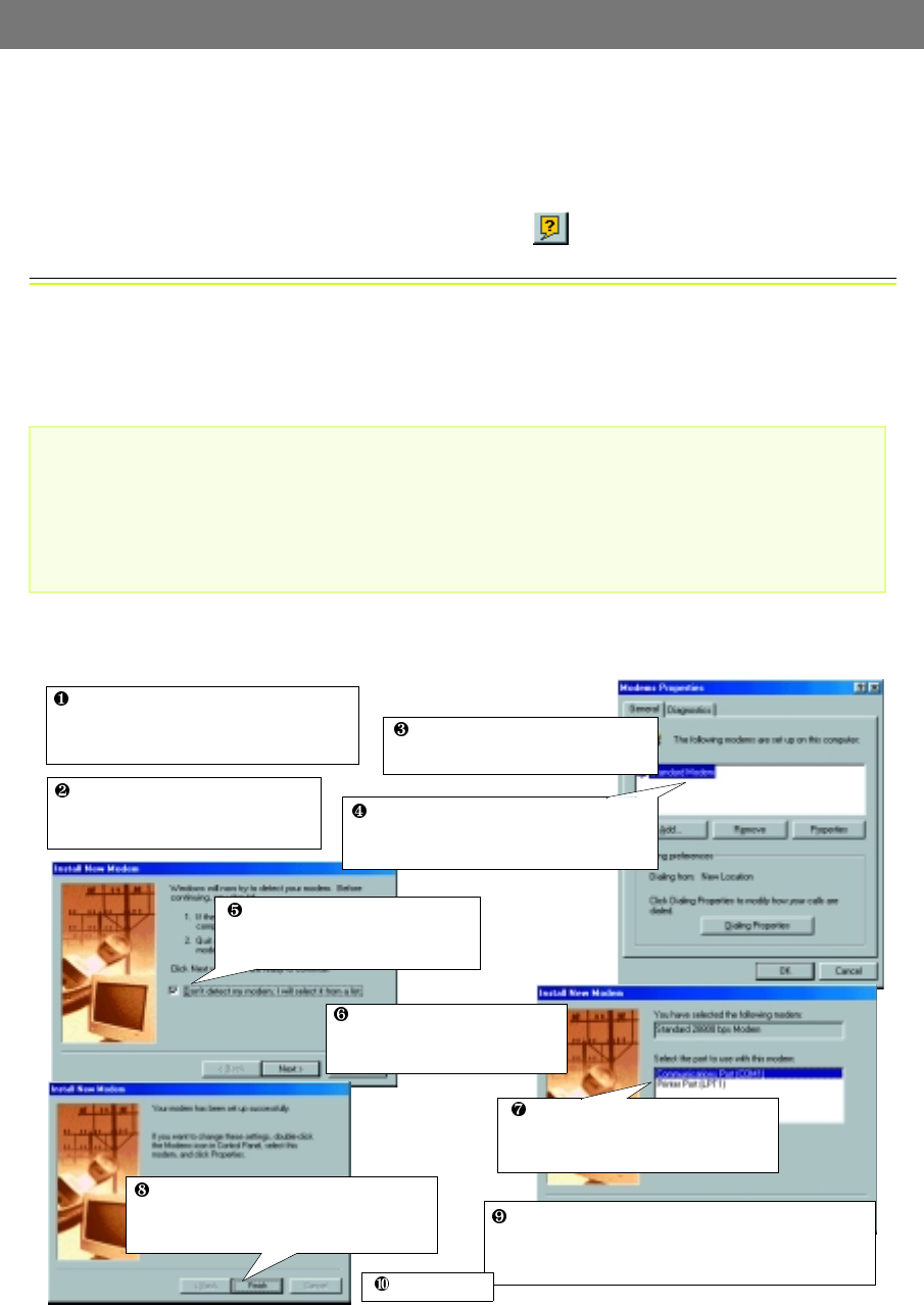 modem cable connection. Detailed information on how to check this is provided in Windows Help.